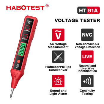 Probador de Voltaje sin Contacto HABOTEST HT91A – Detector Digital NCV con Pantalla LCD y Punta Intercambiable