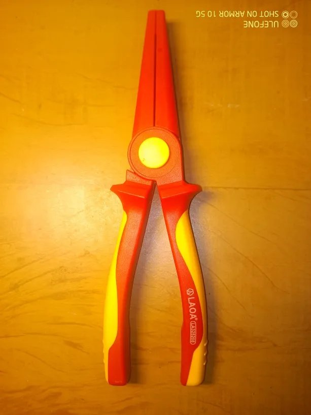 Muy bueno por el precio. Ideal para quitar un cable del distribuidor cuando se trabaja bajo tensión. Los alicates están completamente hechos de plástico. Estoy curioso sobre cuánto tiempo durarán. Muchas gracias.